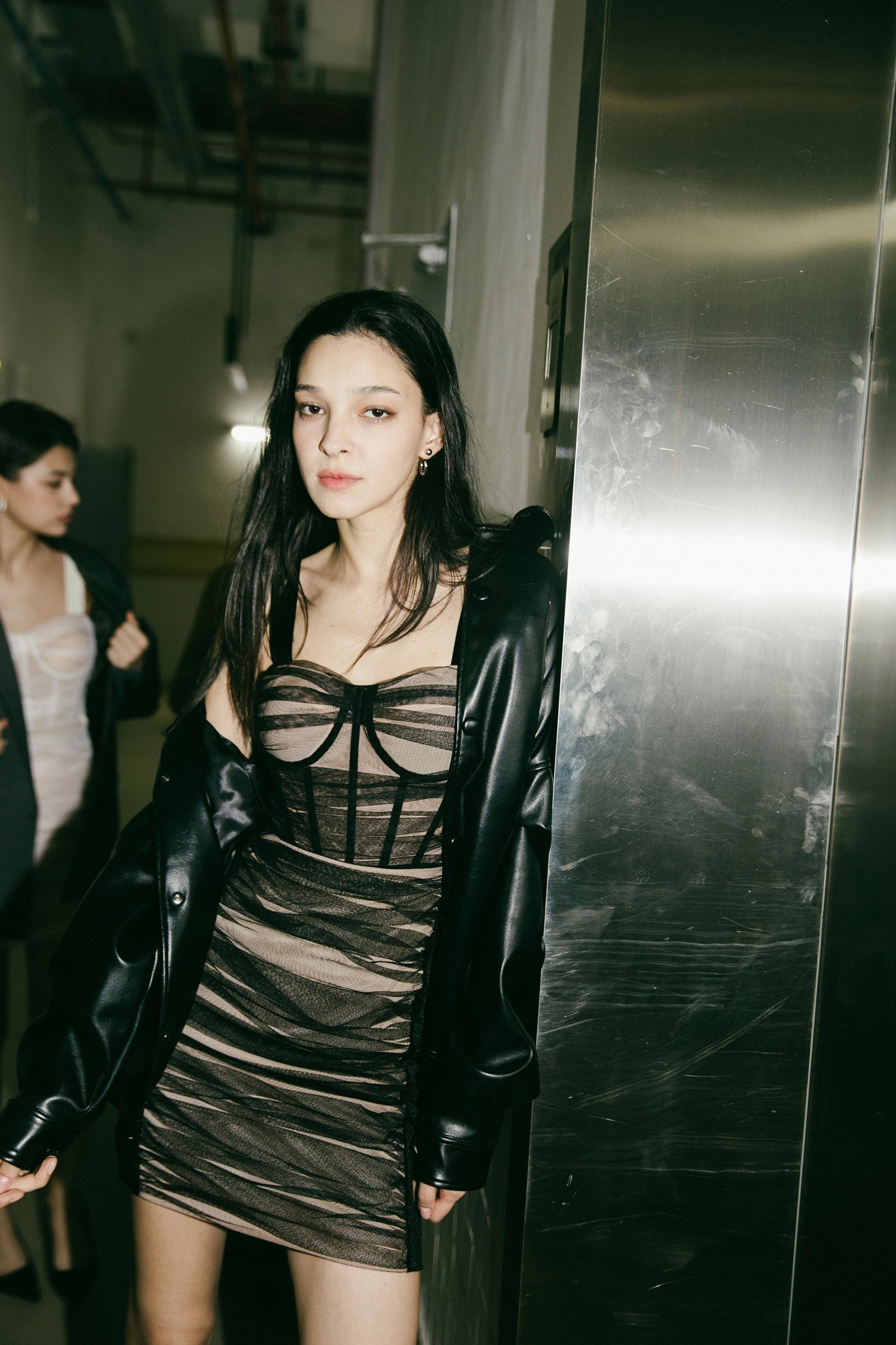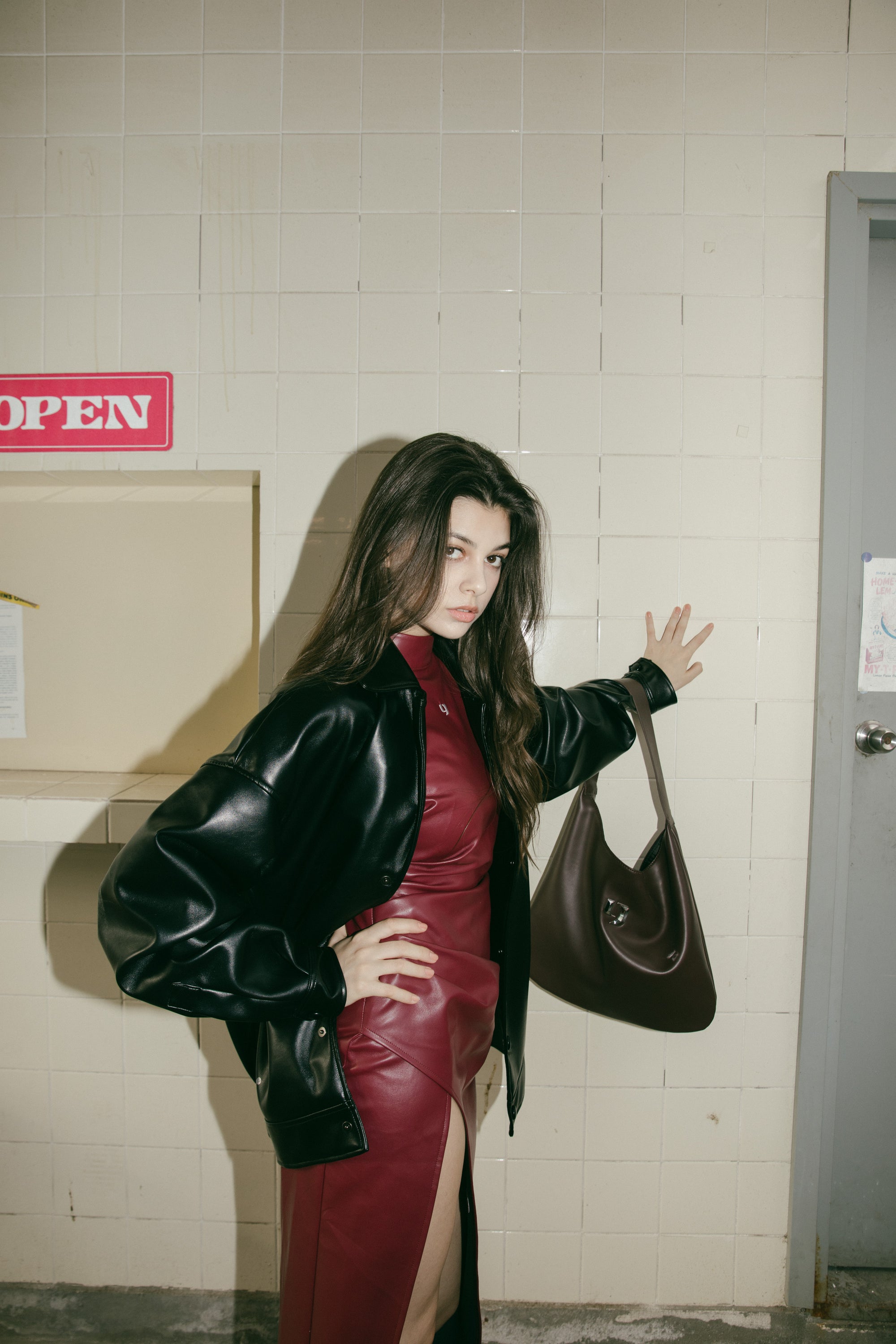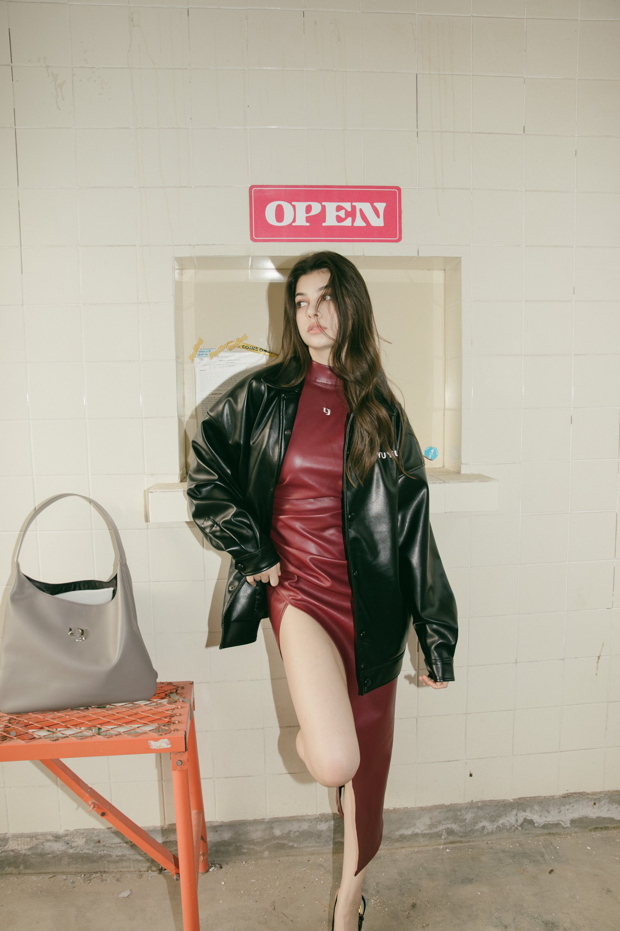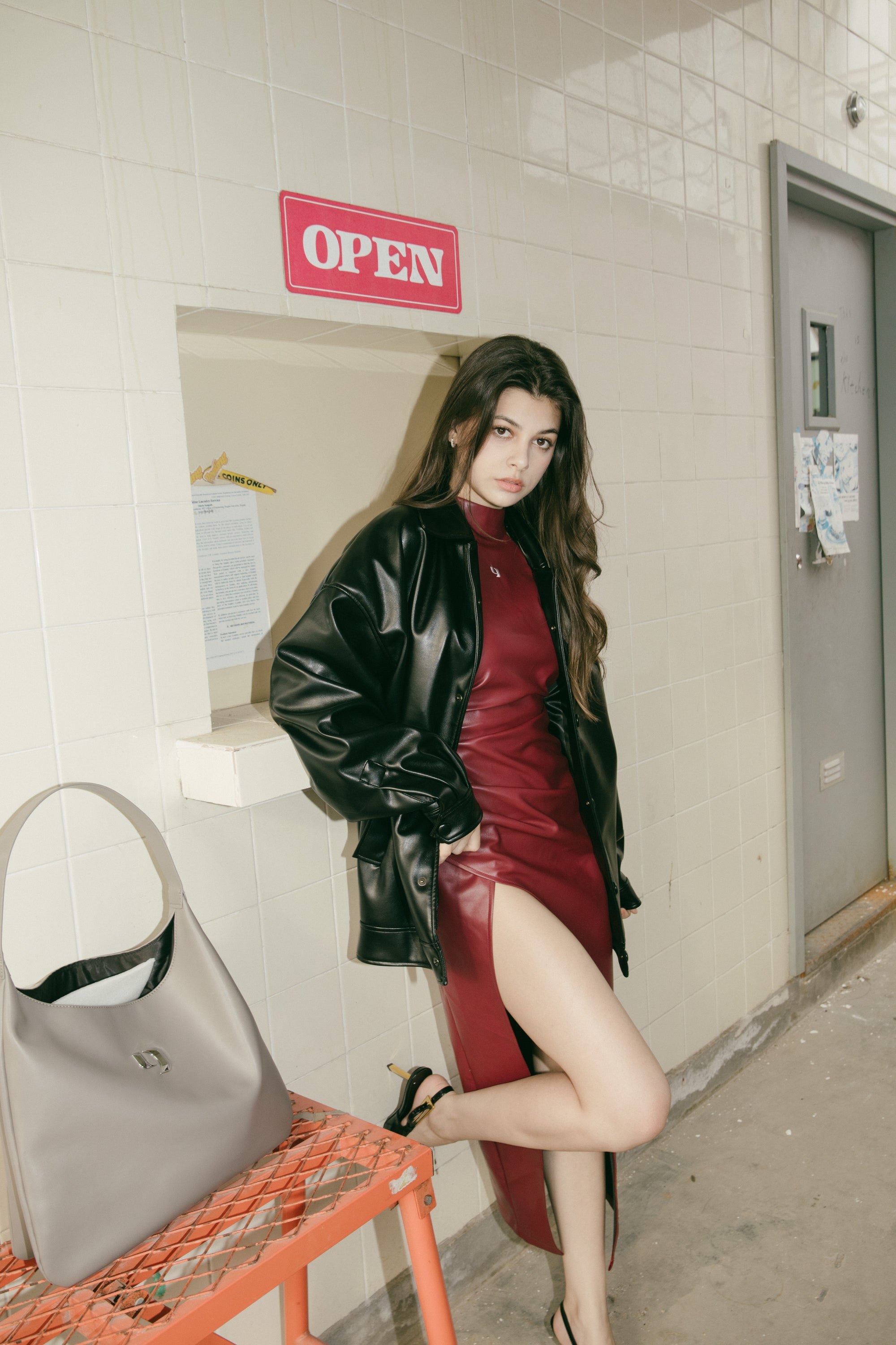Slit Leather Dress